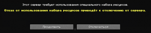 Отказ от ресурс-пака приведёт к отключению от сервера. Без него играть на сервере нельзя. |